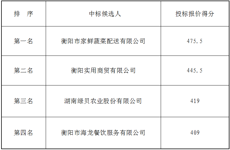 衡阳市衡府宾馆有限公司(养正园)食堂食材(蔬菜类)公开比选候选人公示
