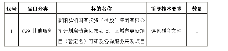 采购项目名称:衡阳弘湘国有投资(控股)集团有限公司计划启动衡阳市老旧厂区城市更新项目(暂定名)可研及咨询服务采购项目