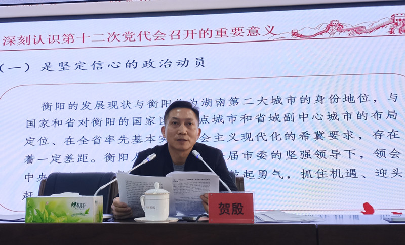 刘军要求,全部干部职工要深刻领会贯彻衡阳市第十二次党代会的精神内涵。要丰富方法途径,在理论上更懂,发现学深悟透的新视角,保持对党的绝对忠诚,怀揣理想情怀、家国情怀和为民情怀,立足弘湘国投职能,着重领悟“三高四新”和“三强一化”宏伟蓝图中涉及企业改革发展的重要论述。要结合过去将来,在思想上更清,从自身实际出发,结合衡阳和弘湘国投的发展规划,提高自身的思想认知,明确今后的工作方向和重点,立足本职工作,敢担当、重团结,开拓创新,砥砺前行。务必细照笃行,在行动上更强,积极响应市委市政府、市国资委、公司党委的号召,对标对表、奋力拼搏,落实公司各项工作,做好公司改革转型、资产开发提质、资金增收降债、资源升利降闲工作,切实打开弘湘国投新局面、展现新风貌,实现公司高质量发展。