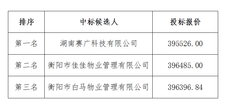 衡阳视界科技发展有限公司物业服务项目中标候选人公示