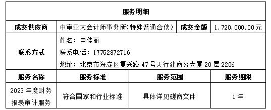 衡阳市国有资产投资控股集团有限公司的衡阳市国有资产投资控股集团有限公司(含下属子公司衡阳弘湘国有投资(控股)集团有限公司和衡阳市发展投资集团有限公司)2023年度财务报表审计服务项目竞争性磋商采购项目于2023年12月6日结束,现将成交结果公告如下: