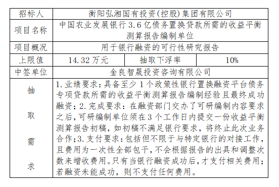 招 标 人:衡阳弘湘国有投资(控股)集团有限公司