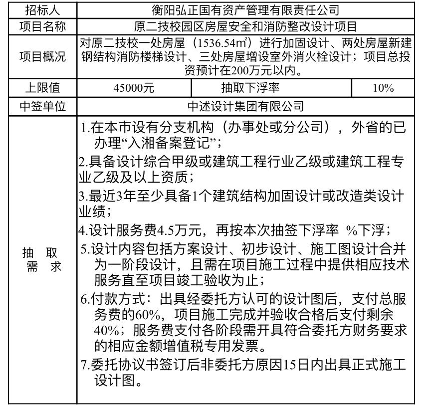 原二技校园区房屋安全和消防整改设计项目抽取结果公示