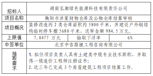 招标人:湖南弘湘绿色能源科技有限责任公司